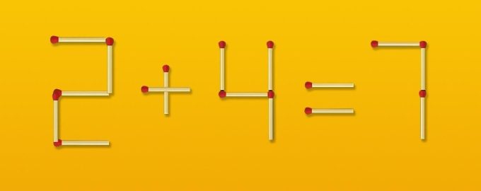 Det var nödvändigt att omorganisera en tändsticka i talet 2 så att talet 3 bildades av det. Då får vi exemplet 3+4=7, vilket är korrekt.