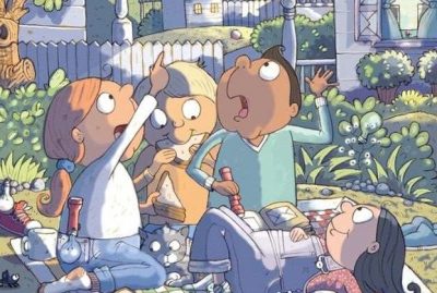 På bilden ser vi en familj som har haft picknick under stjärnhimlen. Tillsammans med familjen njuter de av en trevlig sittning och kisse. Barn och vuxna tittar intresserat på stjärnorna på himlen, äter smörgåsar och småpratar.