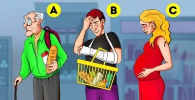 Föreställ dig att du befinner dig i en livsmedelsbutik där tre personer misstänks för stöld – en pensionär, en man med bruten arm och en gravid kvinna. Det är dem vi ser på bilden just nu.