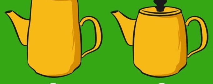 På bilden ser vi två gula tekannor i olika storlekar, och du måste avgöra vilken av dem som rymmer mest te. Du måste titta noga på alla detaljer, eftersom det är svårt att i förväg förutse vilken liten detalj som kan indikera rätt svar.