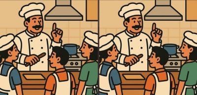 Så är du redo för nästa utmaning? Ta en närmare titt på två bilder av en kock som håller mästarkurser i köket. Vid första anblicken kan bilderna se likadana ut, men om du gräver djupare kommer du att märka 3 små skillnader som är smart dolda i bilden. Kan du hitta dem alla på bara 19 sekunder?